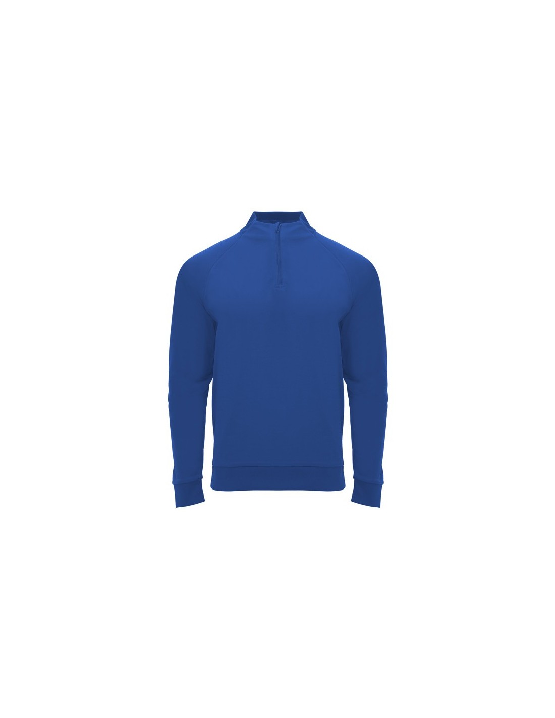 Sudadera de manga ranglán, con Interior perchado, cuello con media cremallera y cubrecosturas de refuerzo en su interior a tono. Parte posterior del cuello, puños y bajo en canalé 1x1.