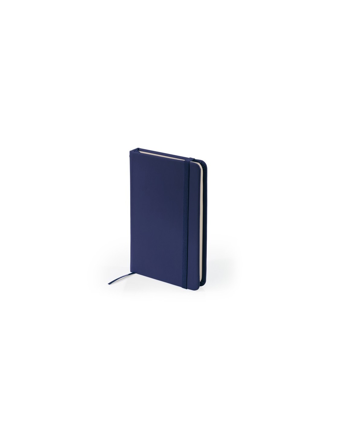 Bloc de notas A6 con tapa rígida de polipiel. Marcapáginas y banda elástica. 100 hojas.